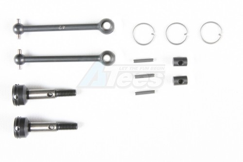 • These are universal drive shafts designed for the front of the Tamiya XV-01 cross platform chassis. Once installed you can enjoy the threefold benefits of employing universal shafts on your model; enhanced drivetrain efficiency; increased ability to hug the road surface; and reduced tendency of dog-bone type drive shafts to dislodge on impact.