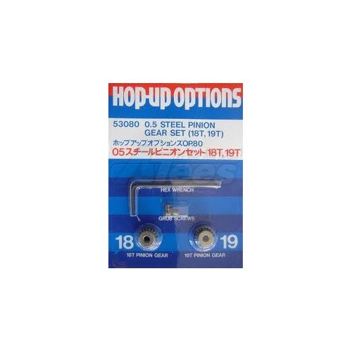 - Factory description: Tamiya 0.5 Steel Pinion Gear (18/19t)