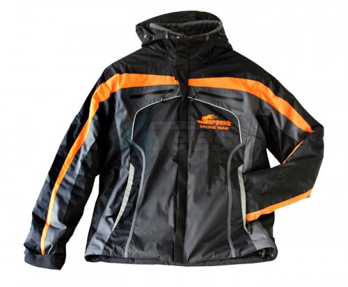 • Winter jacket Serpent black-orange hooded (M) Serpent fine hooded winter jacket in black, with orange and silver-grey details and top quality materials. Features Serpent logo embroidery on front, inside and back in orange, water resistant outer textile, a warm hoody which can be removed as well, 2 zipped breast-pockets, 2 zipped lower pockets, 1 zipped arm pocket, warm and comfortable Sensortex lining with silver-chrome sections, inner pockets on right and left side, cell phone pocket, velcro adjusters on the wrist area, fleece covered neck-section for comfort and reflective silver lining on the front . The ideal winter jacket for the winter-races and many other outdoor activity like skiing, climbing and cycling. Jacket is made by a famous outdoor and adventure sports clothing factory. Show your team-colors, wherever you go!
