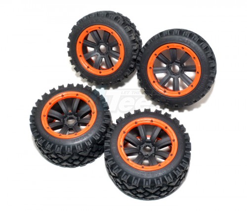 Madmax Over Lander Tire With Quality 5B New 8-spoke Black Rims And Orange Beadlocks