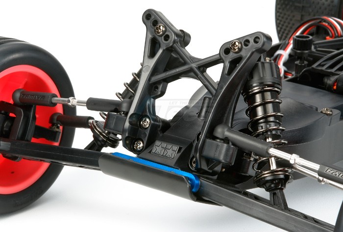 - Double wishbone suspension has the same geometry as the TRF201 and is equipped with CVA shock units.