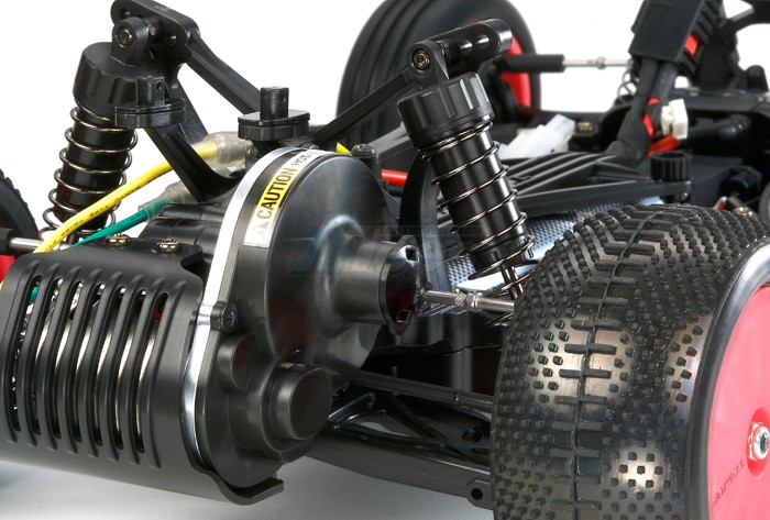 - Rear-mounted motor contributes to great traction. Compact gearbox is equipped with a ball diff.