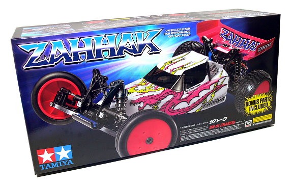 - This is a 1/10 scale R/C assembly kit of the Zahhak, a 2WD buggy which was developed from the expert-level TRF201 buggy. The chassis features the same basic layout as the TRF201, including a longitudinal battery position, 4-wheel double wishbone suspension with long-span suspension arms, and a compact rear-mounted gearbox. In addition, the kit comes with CVA shock units and separated-type diff joints which contribute to its superb off-road performance. Front wide grooved and rear dual block pattern tires are mounted on fluorescent pink wheels*. A newly designed body and rear wing completes this high-potential 2WD racing buggy.