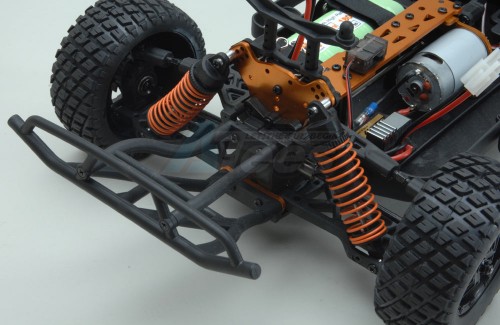 This brushed version features a combination of a 550 class brushed motor, 45A brushed ESC, and a 7.2v NiMh battery. Whilst brushed motors give less power than brushless, brushed motors still give good power and the best value for money. A great way to start enjoying electric RC cars.