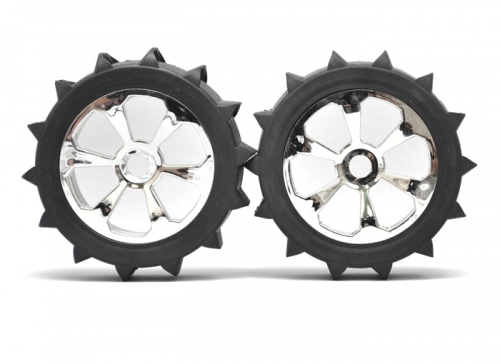 1/8 Buggy 6 Spoke Wheel & Desert Tire Set (1 Pair) Silver by Boom Racing
